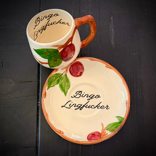 Quick shop Bad Bitch | vulgar vintage style floral blackberry china tea cup with matching saucer $25.00