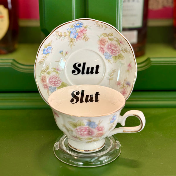 Quick shop Sewer Rat/ Jump in The Hudson | vulgar vintage style floral bouquet tea cup and saucer $22.00