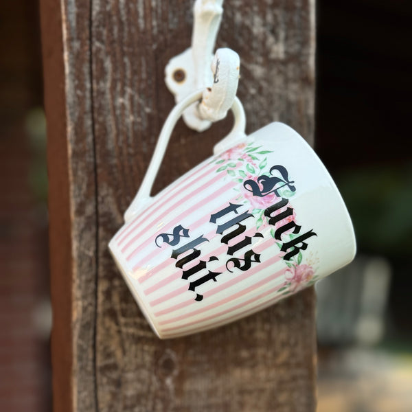 Quick shop Bitch | vulgar vintage style floral black checkered china tea cup with matching saucer and spoon $35.00