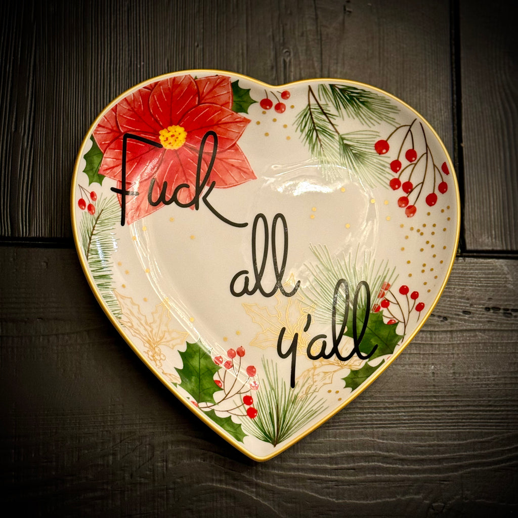 Fuck all y’all | Vulgar vintage holiday poinsettia 10in heart serving tray