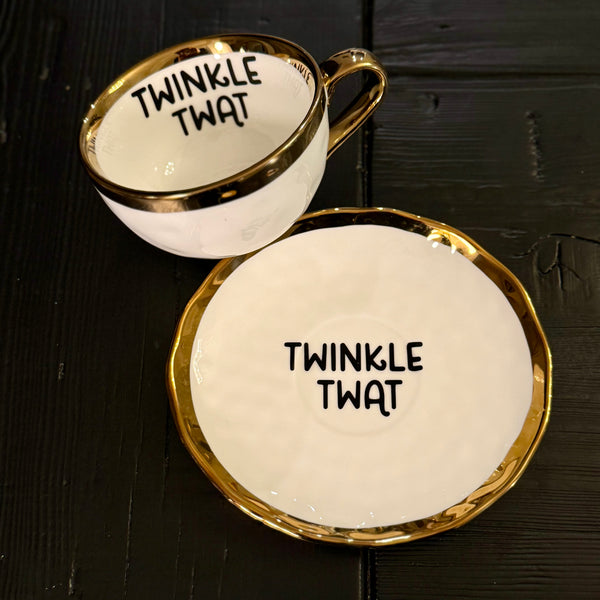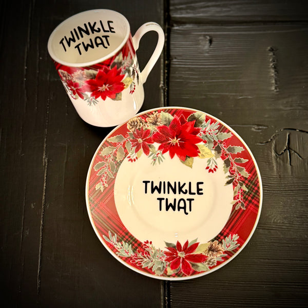 Quick shop Bitch | vulgar vintage style floral black checkered china tea cup with matching saucer and spoon $35.00