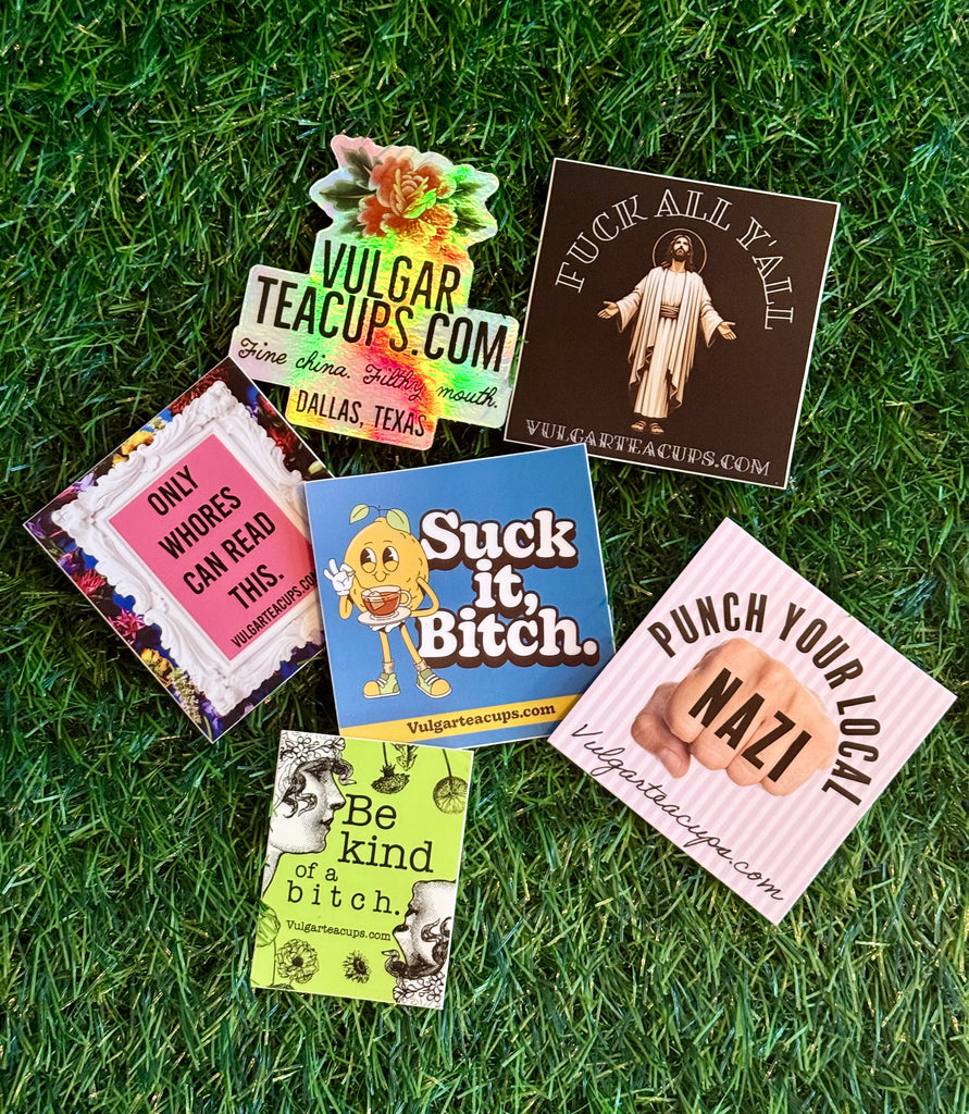 VULGARTEACUPS.COM sticker 6 pack