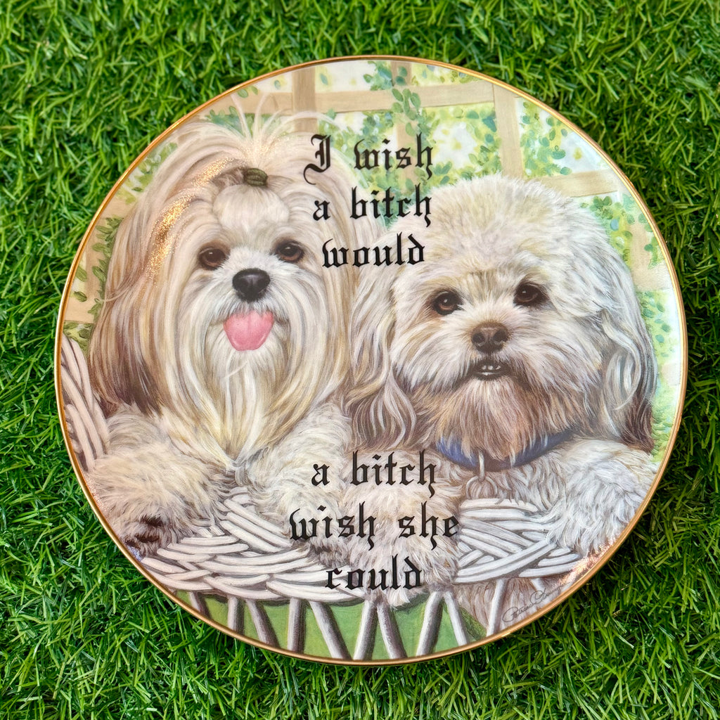 I wish a bitch would. A bitch wish she could. | vulgar vintage numbered Danbury Mint 11in plate with gold detail and hanging bracket
