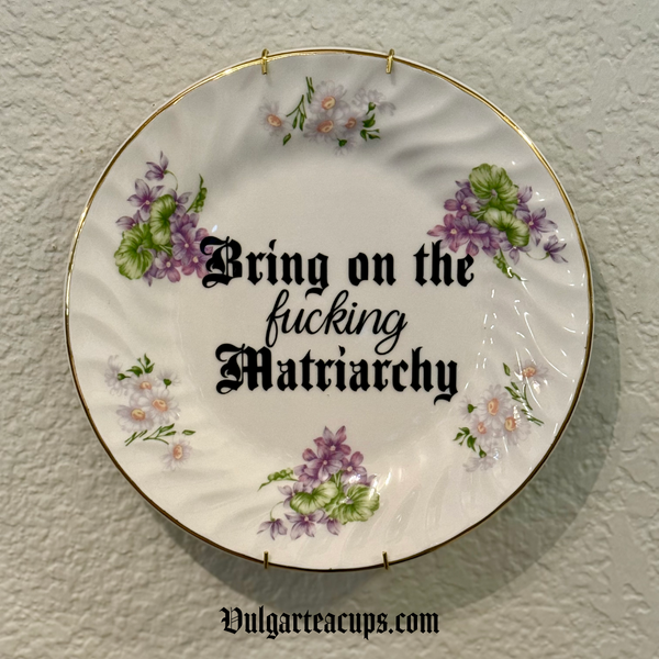 Quick shop Bring on the fucking Matriarchy | vulgar vintage floral 10in plate with gold hanging bracket $35.00