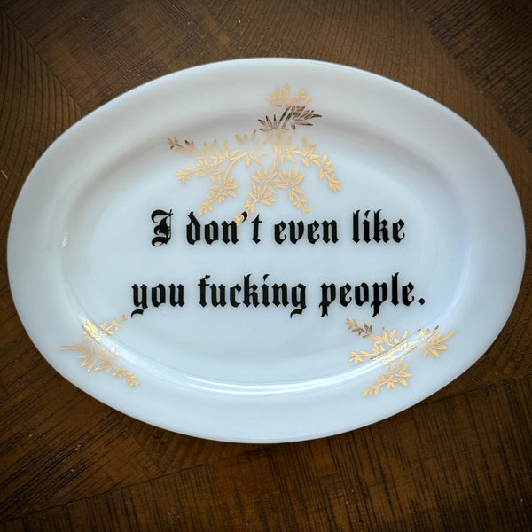Quick shop I don’t even like you fucking people. Vulgar vintage federal milk glass 13in serving tray $40.00