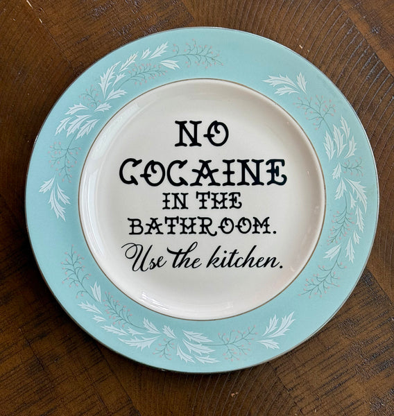 Quick shop No cocaine in the bathroom. Use the kitchen. | vulgar vintage Cavalier Eggshell china 12in decorative dinner plate $40.00