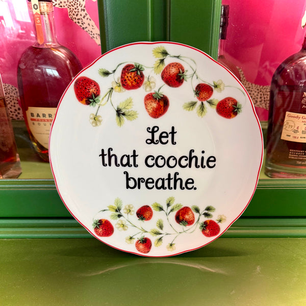 Quick shop Let that coochie breathe. | vulgar vintage Mikasa Strawberry china decorative 11in plate with attached hanging bracket $35.00