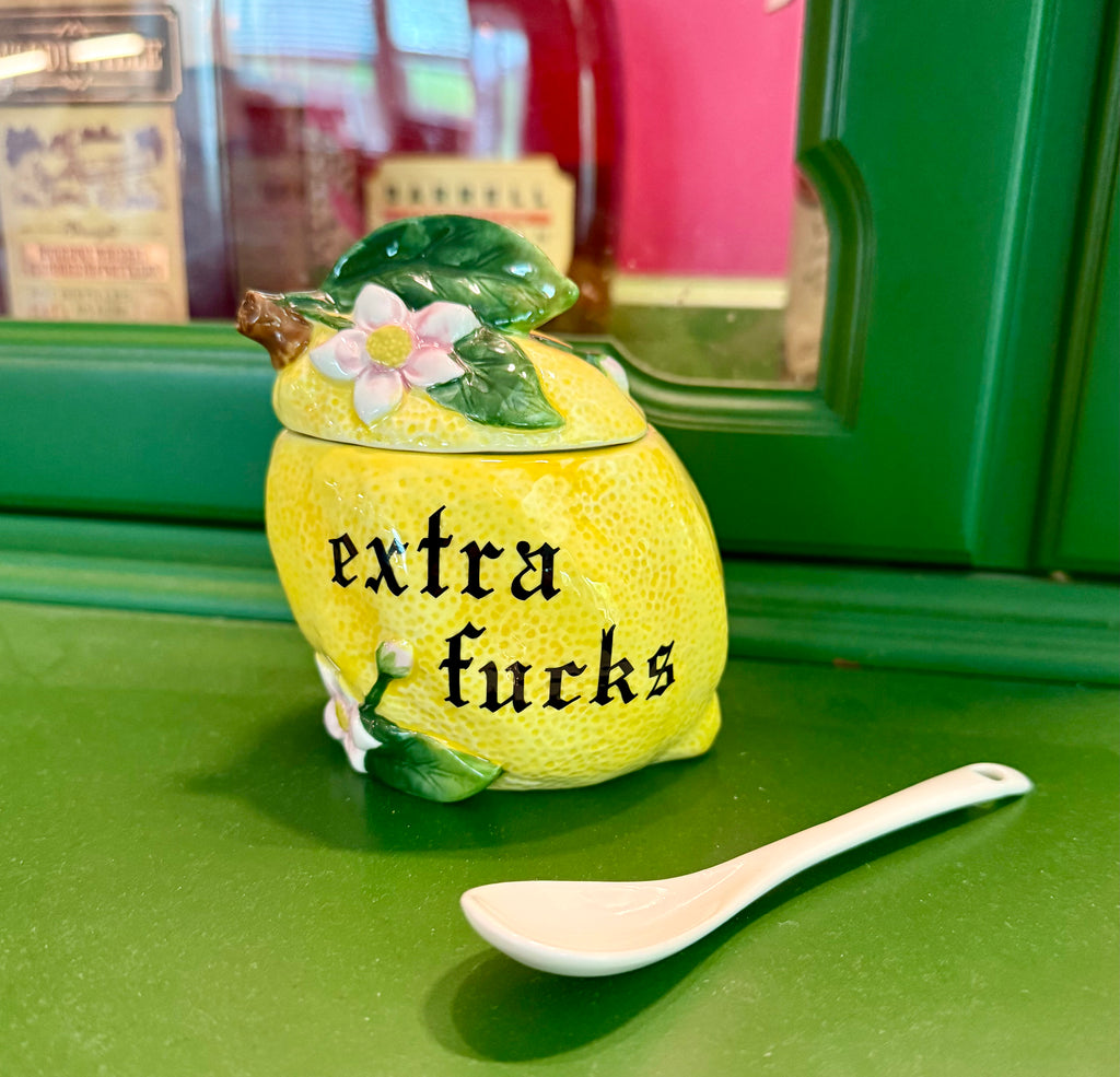 Extra fucks | vulgar vintage lemon blossom sugar bowl/stash box with spoon